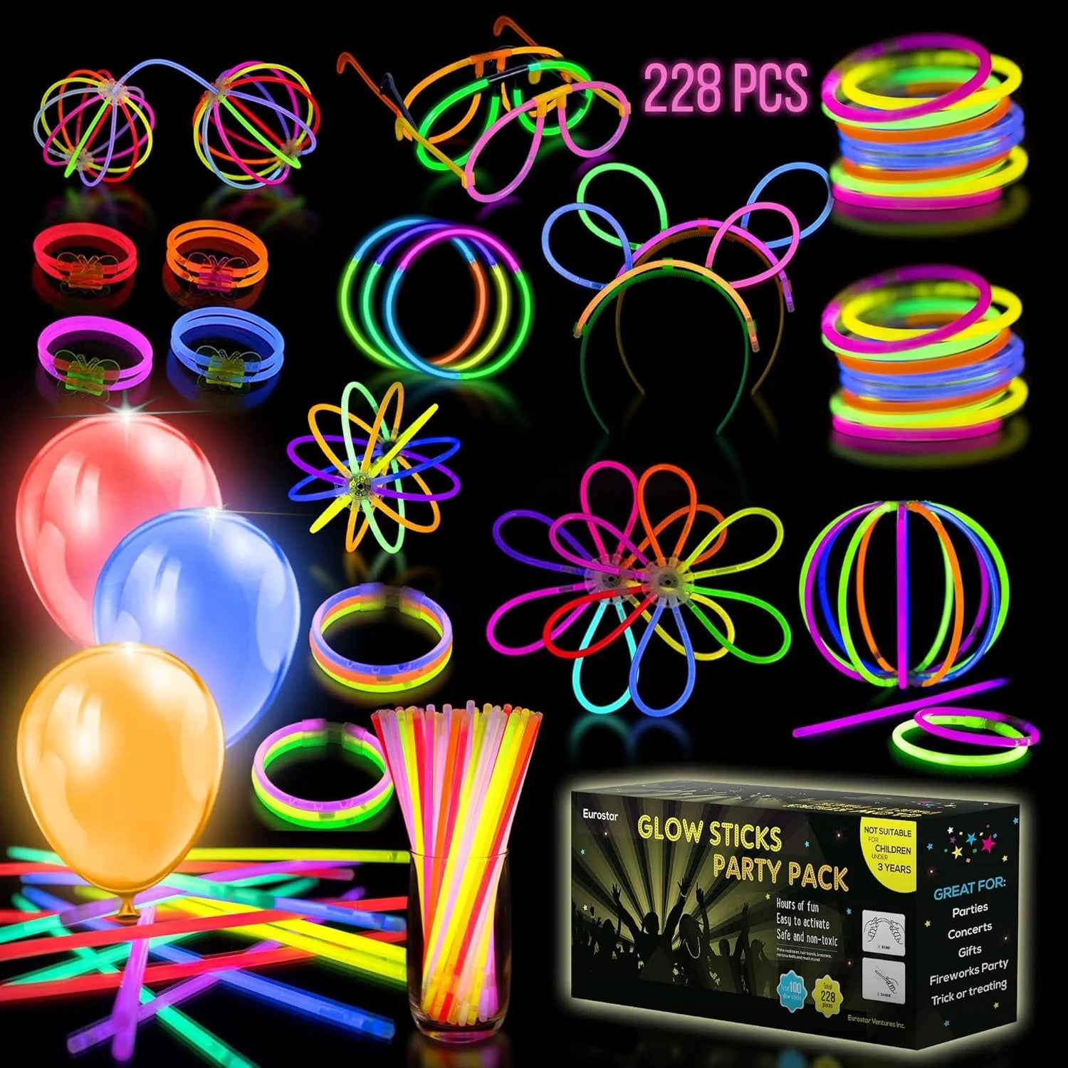 Includes 100 Glow Sticks + 100 Connectors + 28 Accessories – Multicolor Glow-in-the-Dark Fun for Kids’ Birthday Parties
